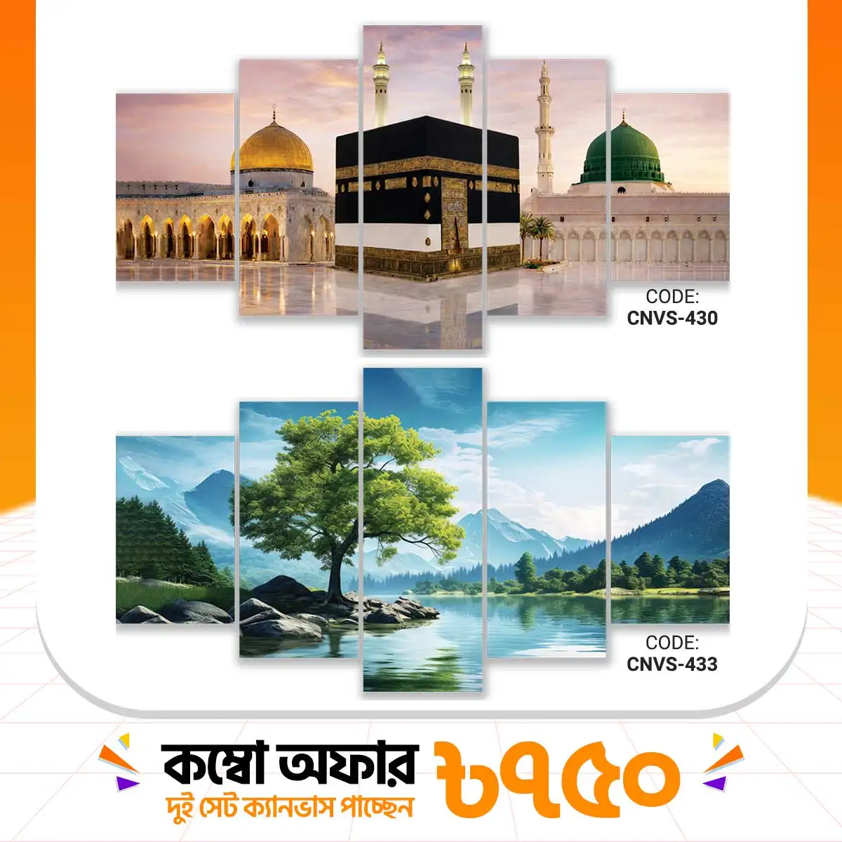 ⭐️ নোটঃ টোটাল ১০টা পার্ট মিলে ২ সেট ক্যানভাস। যার ৫টা পার্ট এবং মাঝের গ্যাপ দিয়ে ১টা ক্যানভাসের সাইজ প্রস্থ ৩৬" ইঞ্চি এবং দৈর্ঘ্য ১৮" ইঞ্চি।