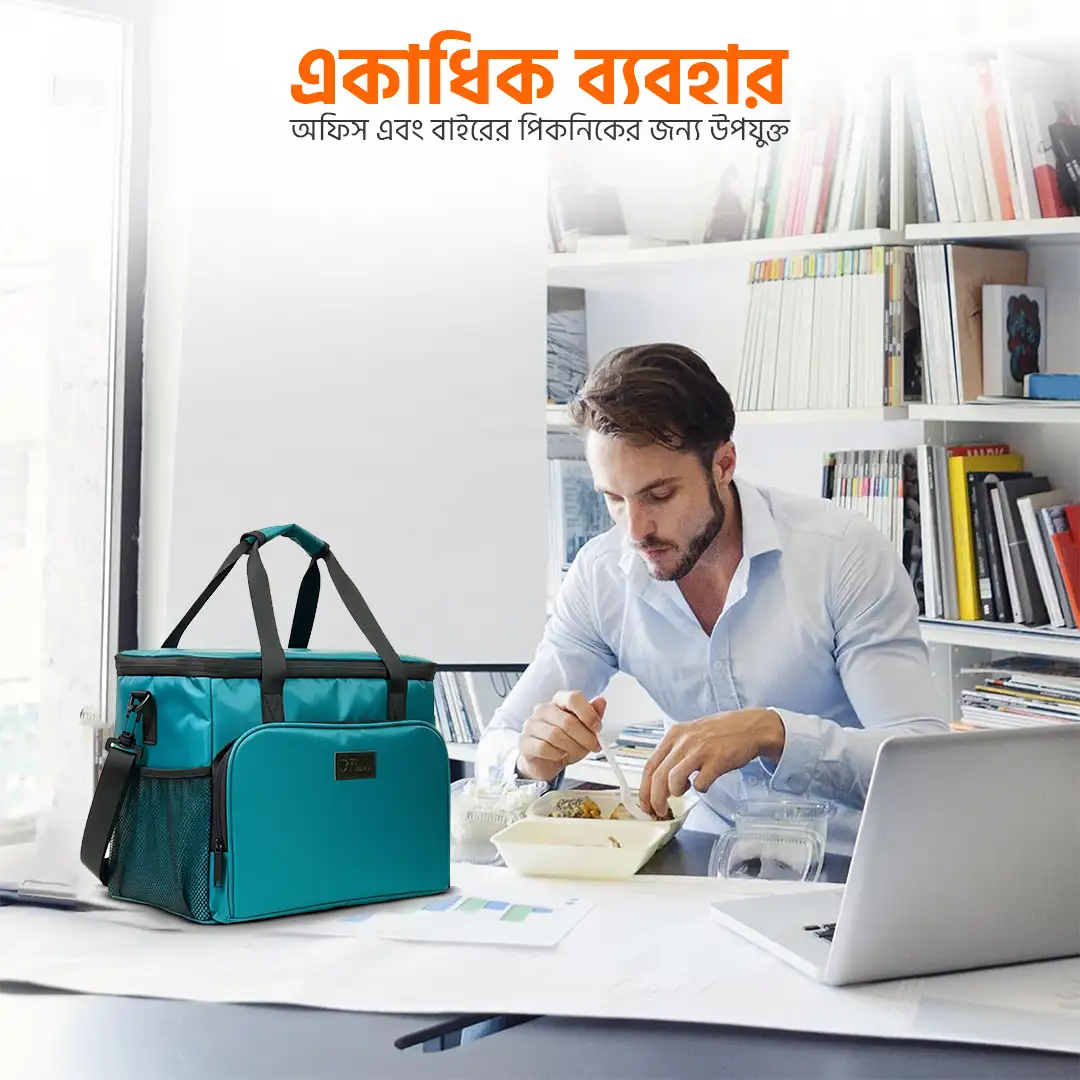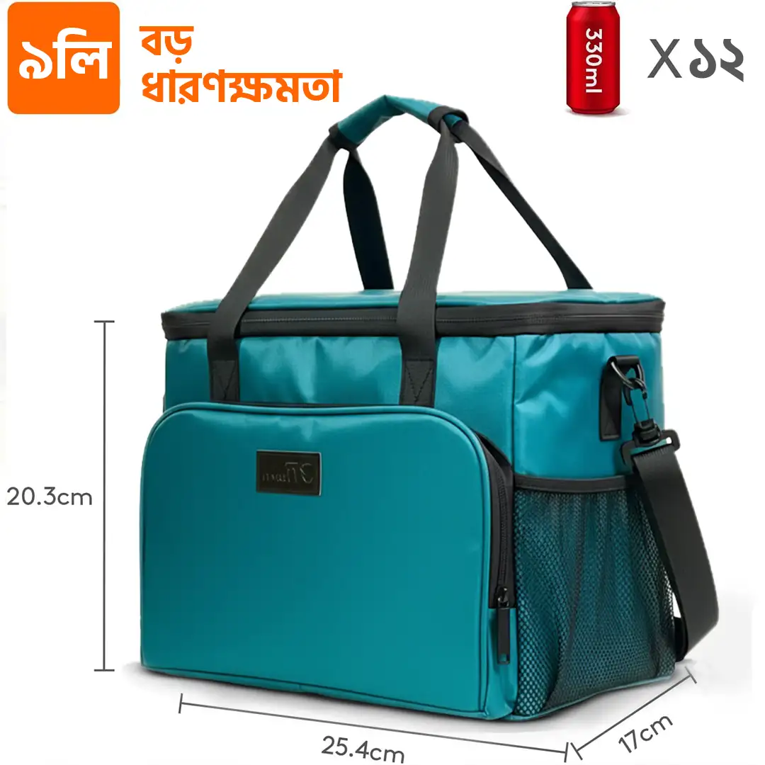 বিশাল জায়গা (Large Capacity): বাইরে থেকে কম্প্যাক্ট দেখালেও ভেতরে প্রচুর জায়গা। এতে অনায়াসেই ২-৩টি বড় টিফিন বক্স, পানির বোতল এবং ফল বা স্ন্যাকস এঁটে যাবে। এটি প্রায় ১২টি ক্যান (330ml) ধারণ করতে পারে।
