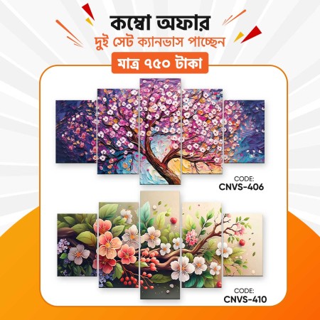 ⭐️ নোটঃ টোটাল ১০টা পার্ট মিলে ২ সেট ক্যানভাস। যার ৫টা পার্ট এবং মাঝের গ্যাপ দিয়ে ১টা ক্যানভাসের সাইজ প্রস্থ ৩৬" ইঞ্চি এবং দৈর্ঘ্য ১৮" ইঞ্চি।