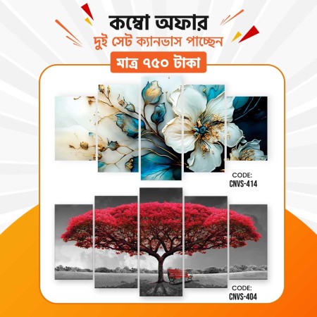 ⭐️ নোটঃ টোটাল ১০টা পার্ট মিলে ২ সেট ক্যানভাস। যার ৫টা পার্ট এবং মাঝের গ্যাপ দিয়ে ১টা ক্যানভাসের সাইজ প্রস্থ ৩৬" ইঞ্চি এবং দৈর্ঘ্য ১৮" ইঞ্চি।