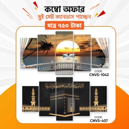 ⭐️ নোটঃ টোটাল ১০টা পার্ট মিলে ২ সেট ক্যানভাস। যার ৫টা পার্ট এবং মাঝের গ্যাপ দিয়ে ১টা ক্যানভাসের সাইজ প্রস্থ ৩৬" ইঞ্চি এবং দৈর্ঘ্য ১৮" ইঞ্চি।